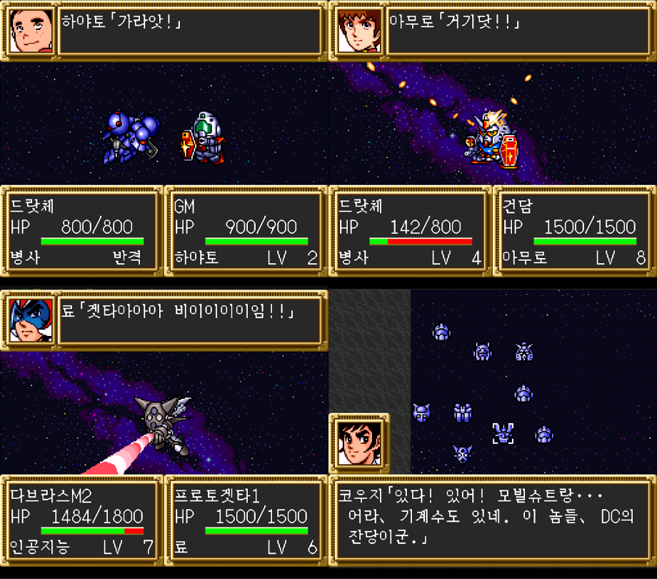 SFC로 발매된 슈퍼로봇대전과 제2차 슈퍼로봇대전에 이어지는 스토리인 3차 슈퍼로봇대전입니다. 팬들 사이에서는 슈로대의 명작중 하나로 인정받는 게임이기도 하죠. 그렇지 않아도 4차를 예전에 올렸었는데 3차를 하면서 역시 재미있는 게임이라는 생각이 들어서 업데이트 합니다! 물론 한글이라는 점이 가장 큰 부분을 차지 하기도 하죠. (정말 재미있는 게임은 언어를 몰라도 게임 자체가 재미있긴 합니다)